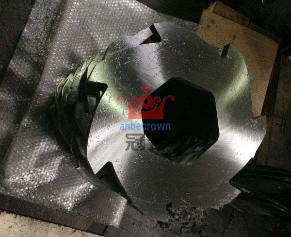 下面我們重點(diǎn)對(duì)單軸撕碎鋸刀片進(jìn)行介紹。單軸撕碎機(jī)切削部分由刀輥、刀粒、定刀和篩網(wǎng)構(gòu)成,單軸撕碎機(jī)的刀粒與定刀之間的小安裝間隙為0.1mm,通過(guò)刀輥進(jìn)行高速旋轉(zhuǎn),使得刀粒與定刀形成切削,然后通過(guò)一次切削,如果物料的尺寸小于篩網(wǎng)的孔徑,則會(huì)從網(wǎng)孔出料,否則物料將在刀箱內(nèi)進(jìn)行多次切削,一直到達(dá)到出料尺寸為止方能出料。